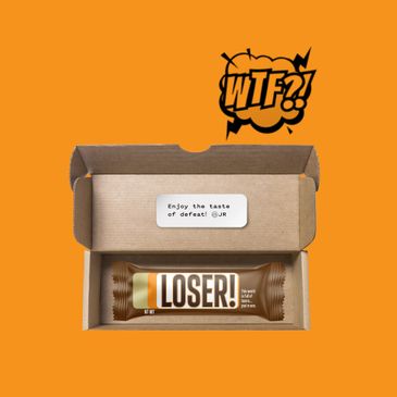 A specially crafted chocolate bar the for the defeated, failure, flunky or dud. There's no sweeter way to tell them they're a loser.
